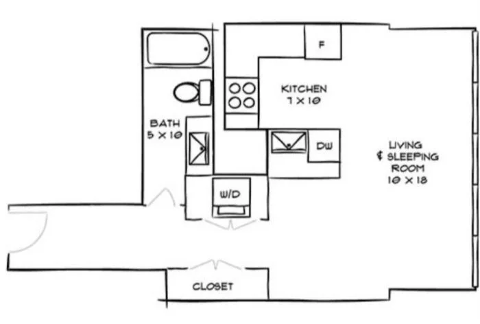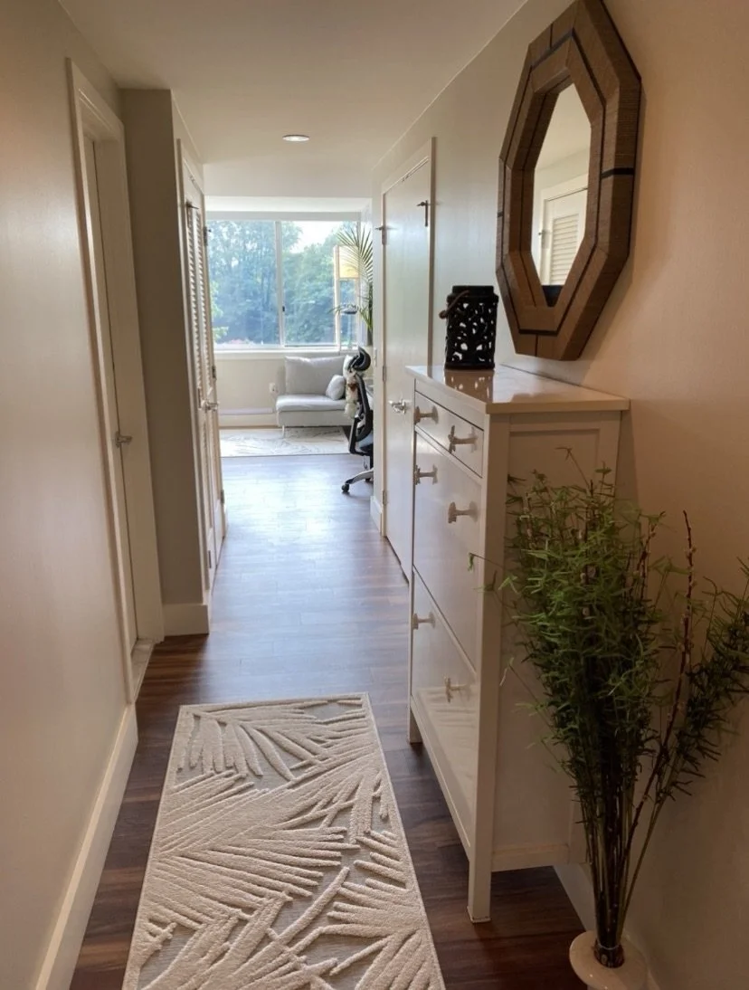 The 425-square-foot apartment needed to function as four distinct spaces — living room, bedroom, office, and kitchen/dining — all within one open plan. With no option to add walls or alter the structure, the challenge was to maximize every square foot while maintaining a sense of openness. The design also needed to feel elevated and cohesive, drawing inspiration from the clean lines, fresh tones, and boutique aesthetic of a modern coastal hotel.